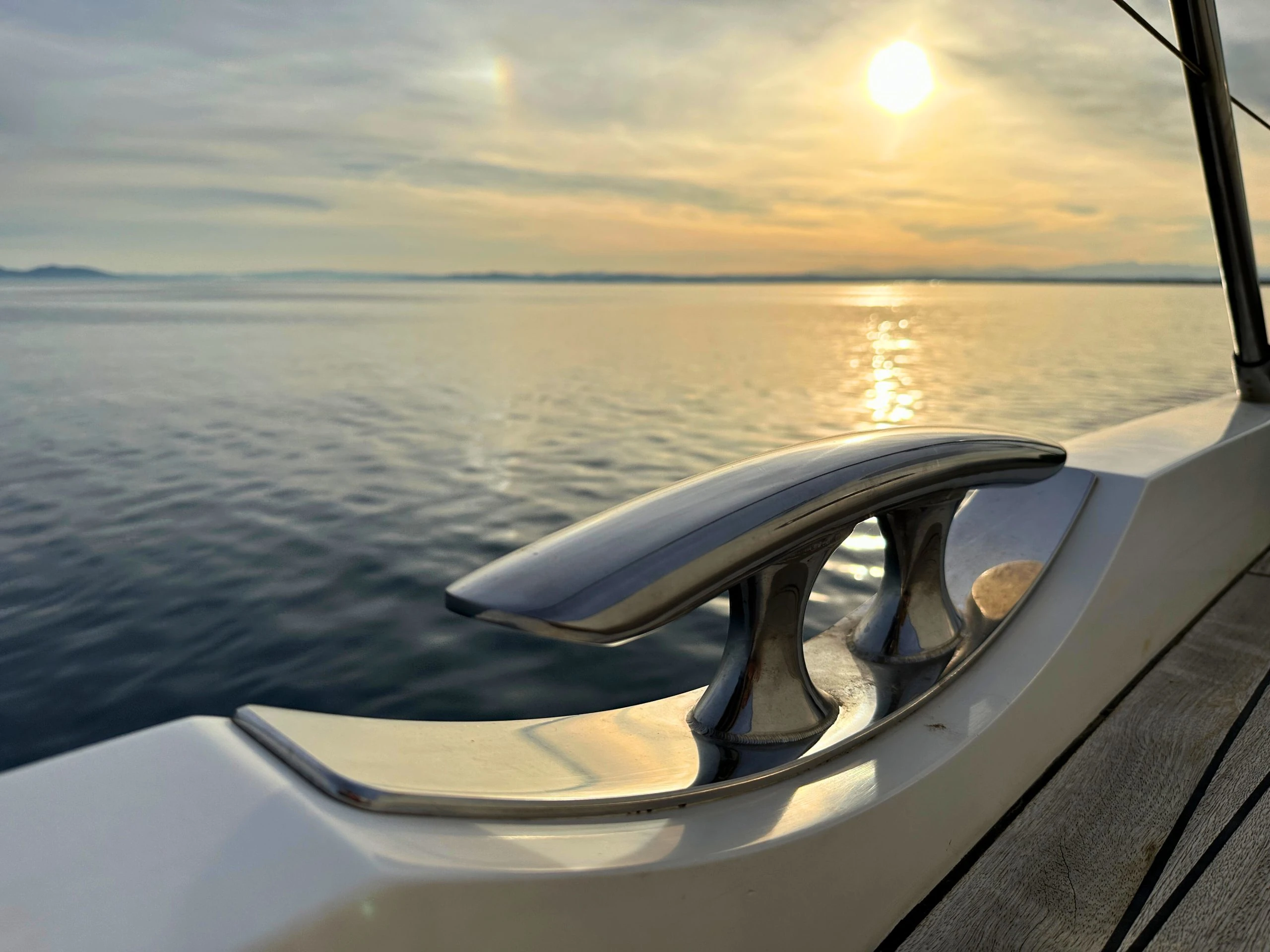 Her immaculate main salon, designed by Stefano Righini, was recently upgraded, offering more space to relax and socialize. With gorgeous wood flooring and paneling, the main salon provides the perfect atmosphere to come together while at sea, whether lounging on the couch or sipping on a martini at the bar. NAMI is host to eight lucky guests within her four sumptuous staterooms. Below deck, the full-beam master cabin features gold wrapping throughout, a Samsung TV and a beautiful en-suite bathroom with a Balneo shower and bidet.